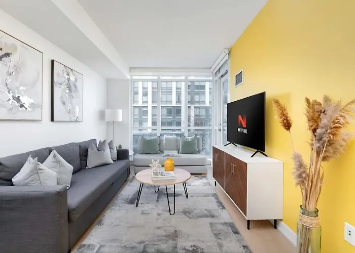 Modern Waterfront Comfort Condo With City Views ferielejlighed ligger i Fashion område i Toronto, 5 km fra Toronto Island lufthavn.